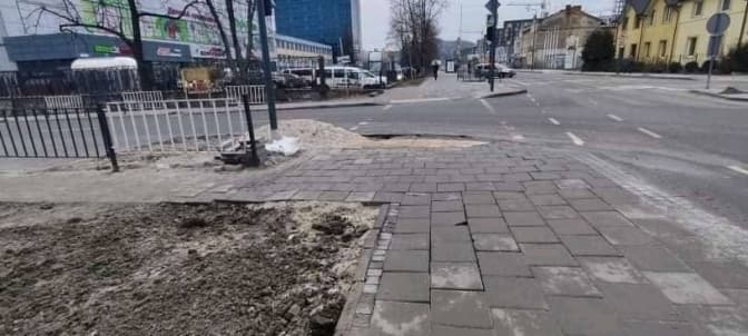 У районній адміністрації запевнили, що на цій ділянці належне відновлення тротуарного покриття виконають до завершення дії дозвільних документів.