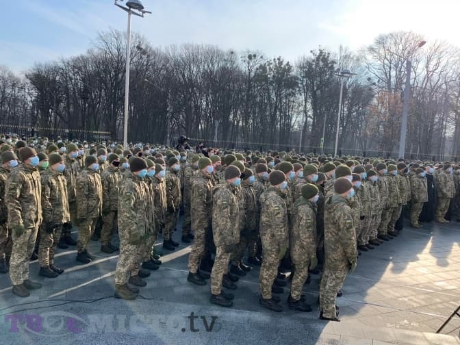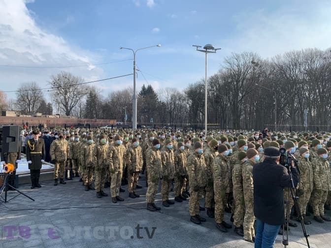На території Академії зібралися військові на знак, щоб показати агресору, що ми єдині і маємо їхній захист.