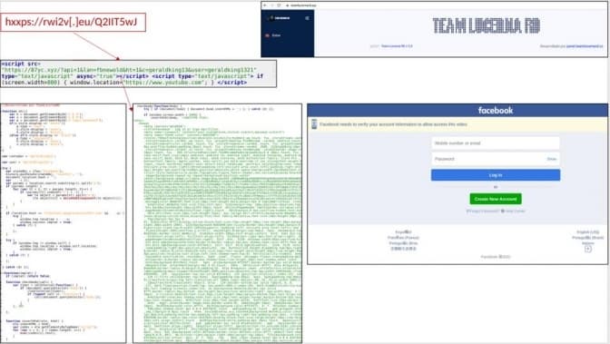 Зокрема, йдеться про масове розповсюдження підозрілих посилань, наприклад hxxps://rwi2v[.]eu/Q2llT5wJ. Якщо відкрити посилання, то браузер мобільного пристрою завантажить HTML-сторінку, що містить JavaScript-код, виконання якого призведе до відкриття URL-адреси, а це, у свою чергу, призведе до завантаження і виконання додаткового JavaScript-коду. Під час аналізу підвтердили факт завантаження коду, який імітував сторінку авторизації Фейсбук і відправляє введені дані користувача зловмисникам.