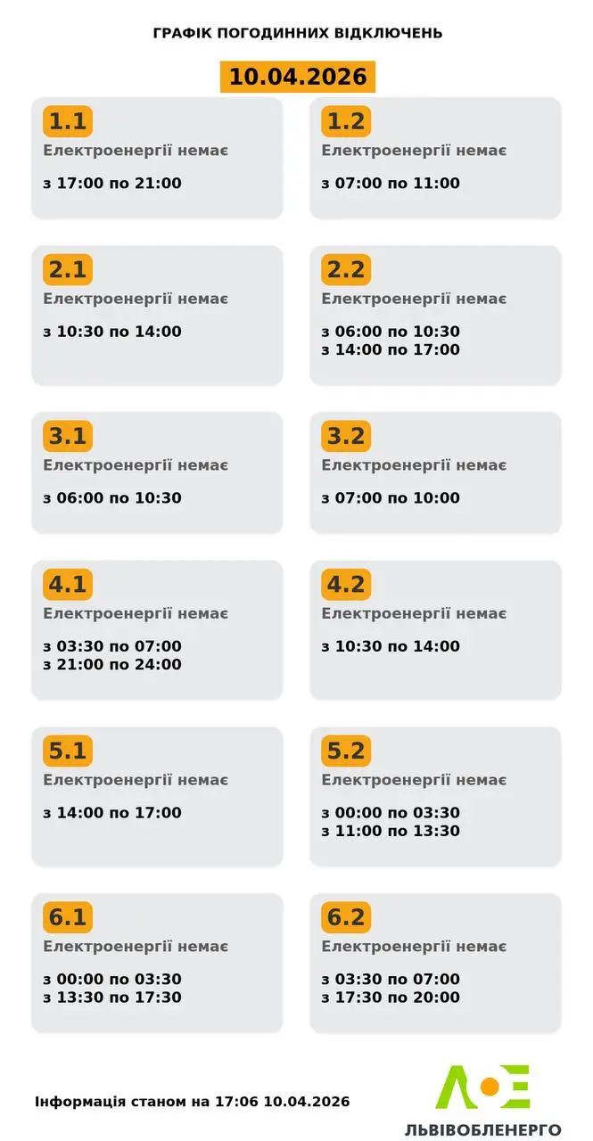 У Львові оновили графіки відключень світла на п'ятницю, 10 квітня. Про це повідомили на сайті "Львівобленерго".