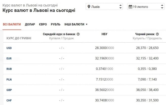 Скрін із minfin.com.ua