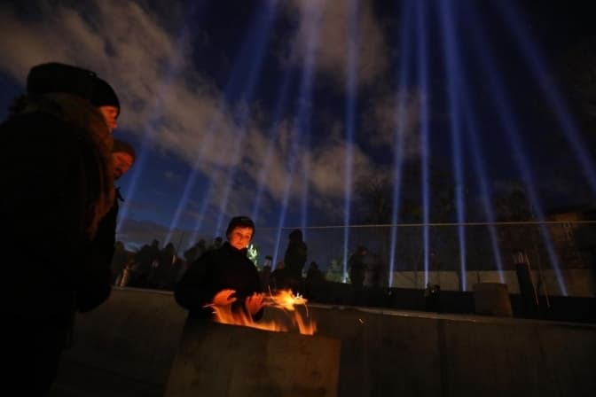 У пам’ять про тих, хто загинув у ці трагічні дні, але змінив хід історії, у небо запустили світлові промені. Промені світла символізують душі загиблих – світло, що долає темряву, самопожертва ціною життя в ім'я життя.