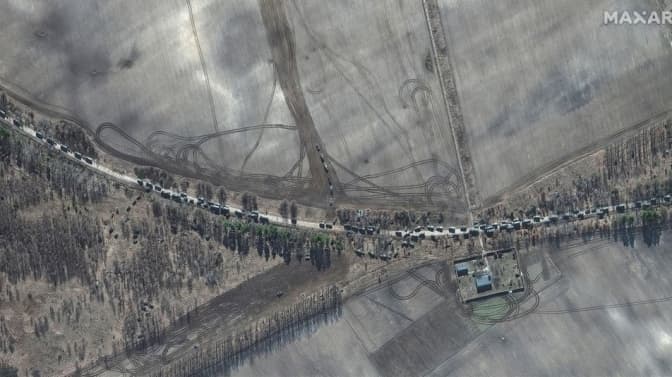 Раніше повідомлялося, що Адміністрація президента США уважно стежить за російським військовим конвоєм, який, згідно з новими супутниковими знімками, опублікованими Maxar, досяг околиць Києва й має довжину більш ніж 64 км.