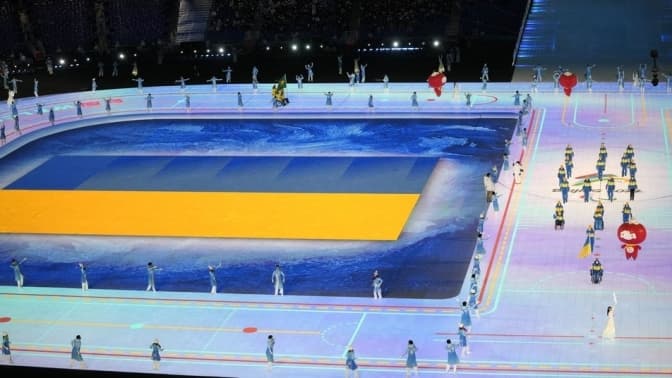 Україні в Пекіні приділили чимало уваги, зокрема, організатори змагань підсвітили арену у синьо-жовтий колір.