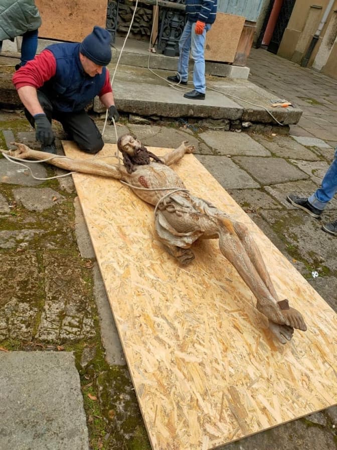Зокрема, реставратори розібрали дерев'яний вівтар з Вірменської церкви XIV століття, що зображає муки Христа на Голгофі. Він є найстарішим не лише у Львові, а й в Україні, каже директорка Інституту стратегії культури Юлія Хомчин.