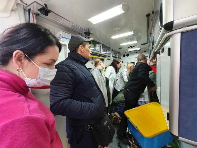 Разом із машиною швидкої допомоги також приїхали вогнегасники, дефібрилятор, засоби індивідуального захисту, медикаменти тощо.