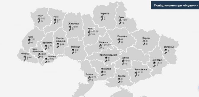 Щоденно відстежувати детальну динаміку робіт із розмінуванню можна на одній з карт. У ній вказана кількість виїздів, площа розмінованих територій та кількість розмінованих вибухонебезпечних предметів в розрізі регіонів.