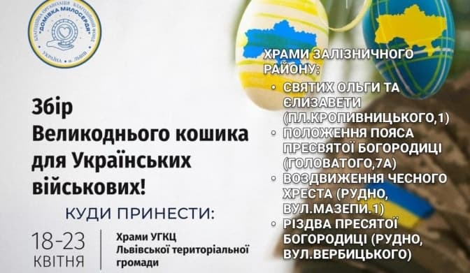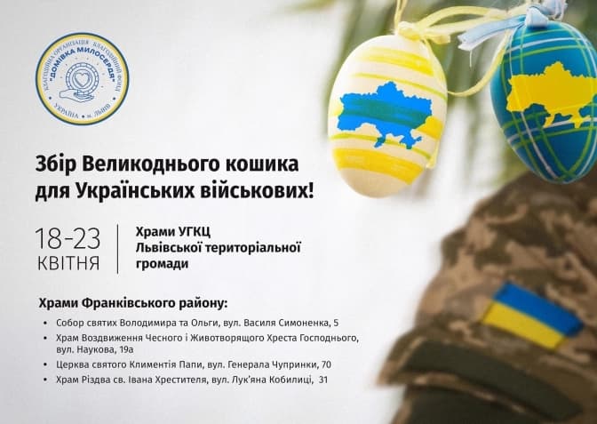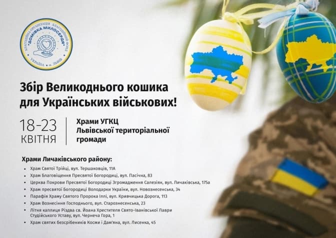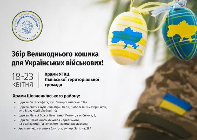 У львівських храмах Української греко-католицької церкви збирають великодній кошик для захисників України, повідомляє БФ «Домівка Милосердя».