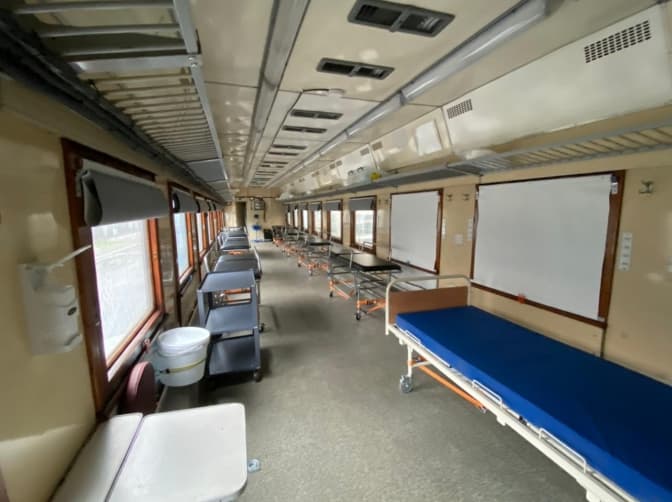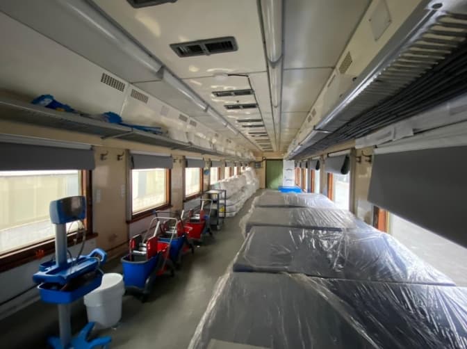 В Україні запрацював новий евакуаційний медичний потяг. Він складається з кількох вагонів, зокрема й вагона інтенсивної терапії. Такий міні-госпіталь вже відправився у свій перший рейс. Завдяки спеціальному медичному транспорту спеціалісти можуть евакуювати на Львівщину з «гарячих» областей України хворих, поранених і травмованих громадян для наступного спеціалізованого лікування. Про це повідомили у Міністерстві охорони здоров'я України.