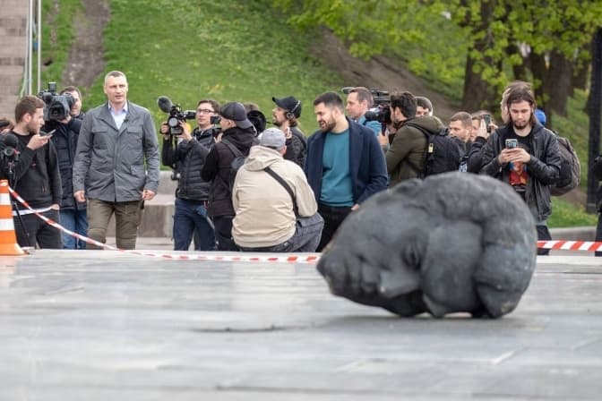 У Києві біля Арки дружби народів завершили демонтаж радянської бронзової скульптури двох робітників, встановленої в 1982 році «на ознаменування возз’єднання України з росією». Про це повідомляє мер Києва Віталій Кличко.