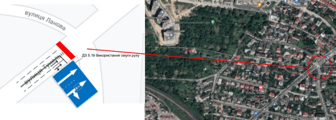 За його словами, смуга – недовантажена, тому пропонують встановити знаки, щоби громадський транспорт (зокрема автобуси з Рясного) мав можливість швидше проїхати цю ділянку і швидше потрапити на вже облаштовану смугу. Йдеться про знак 5.16 (напрямки руху по смугах).