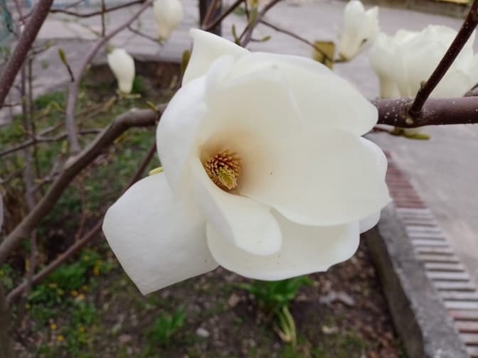 Найпершими навесні квітнуть магнолії – дерева з величезними білими і рожевими квітами. Саме магнолії і гіацинти зацвіли вже у Парку культури.