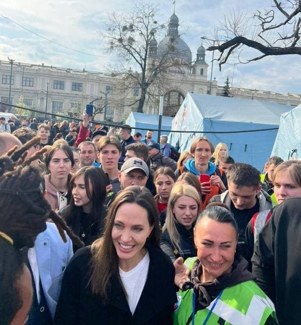 Днями у Львові та області з візитом перебувала голлівудська зірка та посолка доброї волі управління ООН у справах біженців Анджеліна Джолі. Вона відвідала медичні та реабілітаційні заклади у місті і на Львівщині. Також Джолі самостійно прийняла рішення поїхати на вокзал, де переселенцям, що прибувають до Львова, допомагають волонтери.