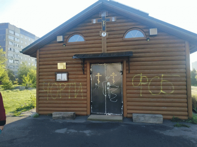 Також невідомі особи залишили на стінах храму написи провокативного характеру, а саме «русня не люди», «дім путіна» та «чорти ФСБ».