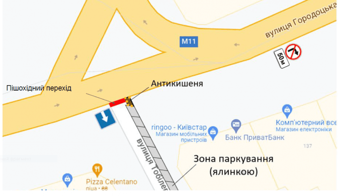 Нагадаємо, що управління безпеки міста Львова запропонувало також встановити делінеатори на просп. Шевченка, біля будинку №7. Із іншого боку проспекту вже є облаштована антикишеня, через що видимість на цьому перехресті покращилася