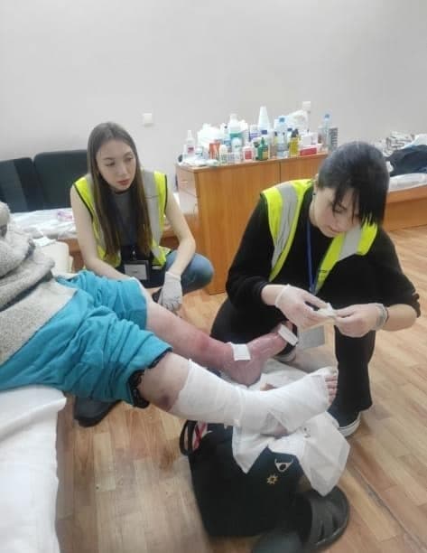 Волонтери медико-психологічної допомоги, які цілодобово чергують на вокзалі, допомогли вимушеним переселенцям вийти з поїзда та впродовж ночі супроводжували у прихистки на Львівщині.