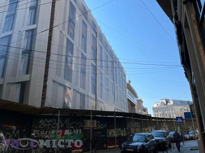 «На риштуванні можна бачити об’єкт у такому вигляді, яким він буде. Зокрема, фасад – з натурального каменю. Це – перший в місті повністю кам’яний сучасний об’єкт, що корелюється з найкращими зразками сучасної архітектури», – запевняє він.