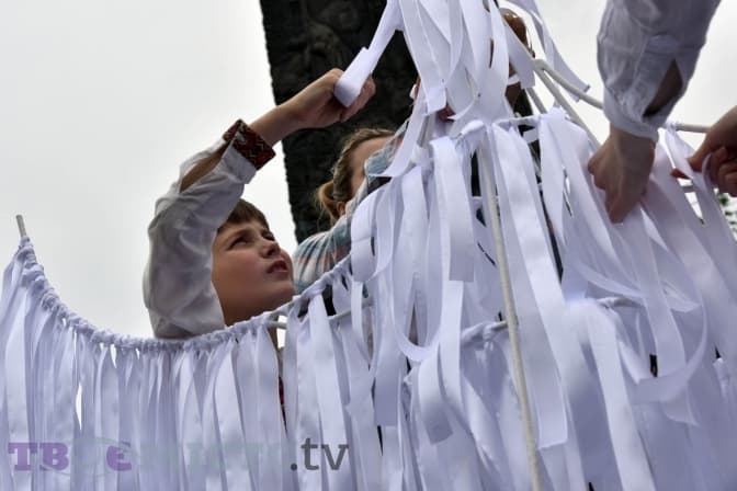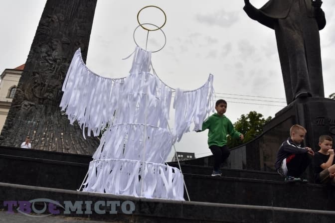 Зазначимо, що «Ангели світла» – це інсталяція ангела, на яку під час заходу діти пов’язували білі стрічки, як символ душі маленьких українців, які загинули від рук загарбника.