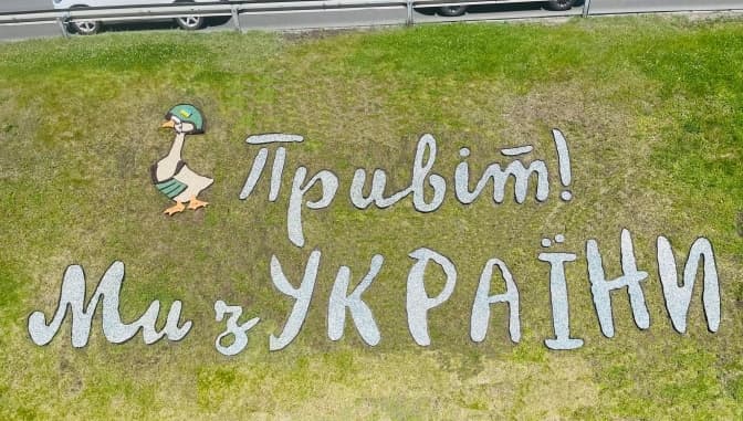 У Дніпровському районі столиці, біля станції метро «Лівобережна», з’явився квітник на честь гусей, які «збили» літак окупантів над Україною.