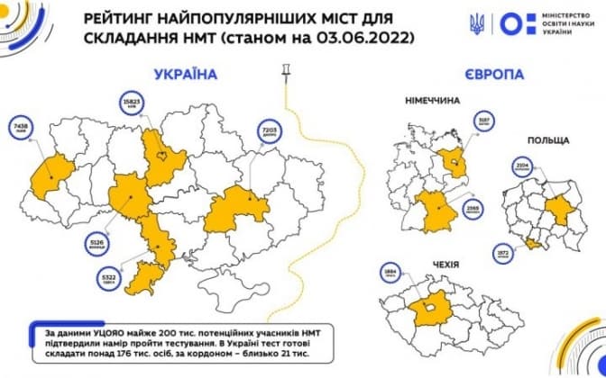 У Міністерстві освіти і науки України оприлюднили рейтинг найпопулярніших міст для складання національного мультипредметного тесту (НМТ), якиий цього року тимчасово замінить ЗНО, в Україні та за кордоном. Відповідний перелік опублікував перелік у своєму Телеграм-каналі очільник МОН Сергій Шкарлет.