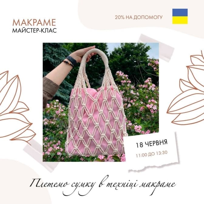 У вартість входять всі необхідні матеріали для створення сумочки. 20% від прибутку організатори відправлять на благодійну допомогу. Тривалість: 2,5 год.