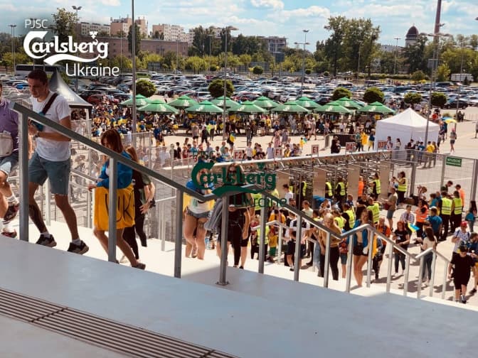 Для того, щоб українці могли повністю поринути в атмосферу домашнього матчу, до Лодзю прибуло й улюблене пиво мільйонів українців. А для тих, хто не зміг купити квитки, національний спонсор розіграв безкоштовні на своїй сторінці у Фейсбуку. Завзяття українським футболістам та вболівальникам додав і друг збірної – Леофан, що прибув спеціально для цих матчів. Українці та поляки однаково радо втішалися появі Леофана та не відмовлялися від обіймів з другом команди.