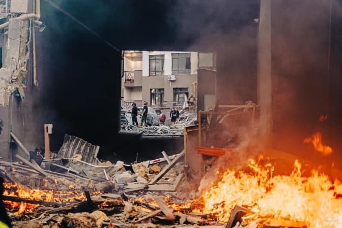 У Києві близько 06:20 ранку 26 червня пролунали вибухи, у 9-поверхівці російська ракета зруйнувала верхні поверхи, сталася пожежа. Про це повідомив мер столиці Віталій Кличко та ДСНС України.