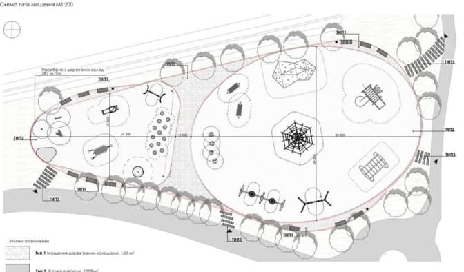Спроєктувала майданчик архітекторка Ольга Криворучко, вона каже, що намагалась продумати наповнення простору так, аби тут було цікаво гратись дітям різного віку. Тож, простір складатиметься із двох секторів – для менших та старших дітей.