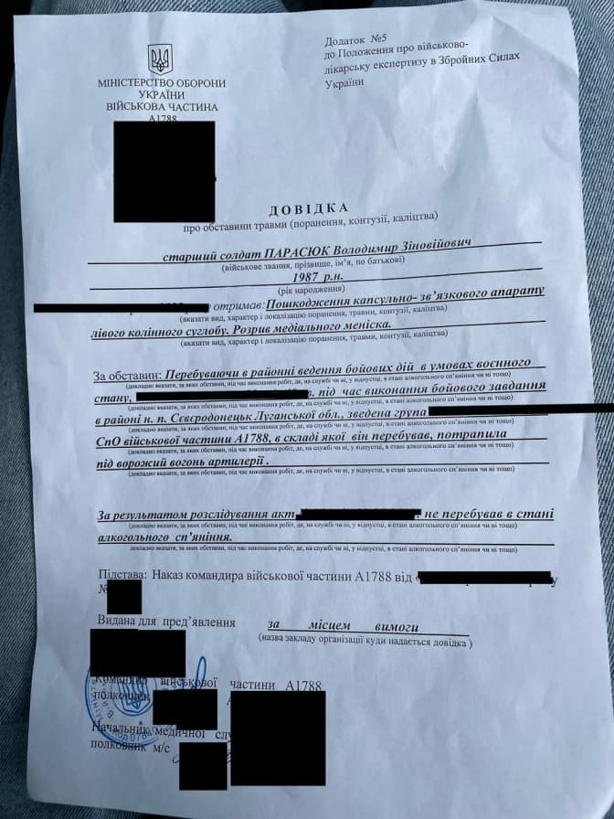 Як повідомив військовий, під час виконання бойового завдання він потрапив під вогонь ворожої артилерії на Сході України, у районі населеного пункту Сіверодонецьк Луганської області. А вчора його прооперували у Першому ТМО Львова. За словами Парасюка, операція пройшла успішно.