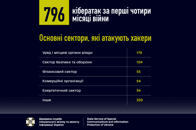 Ворожі хакери продовжують атакувати Україну. Інтенсивність кібератак від початку повномасштабного воєнного вторгнення росії не зменшується, хоча їхня якість – знижується. Як повідомляє Державна служба зв'язку та захисту інформації, найбільше, як і раніше, атакують Уряд та місцеві органи влади, оборонний, фінансовий, енергетичний сектори. Залишаються у полі зору кіберзловмисників також транспортна інфраструктура та телеком-галузь.