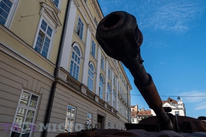 На площі Ринок виставили знищену Збройними Силами України російську техніку. На завтра, 11 серпня, запланували відкриття виставки «Вистоїмо, переможемо!». Вхід буде безкоштовний. До того виставка мандрувала по Європі.