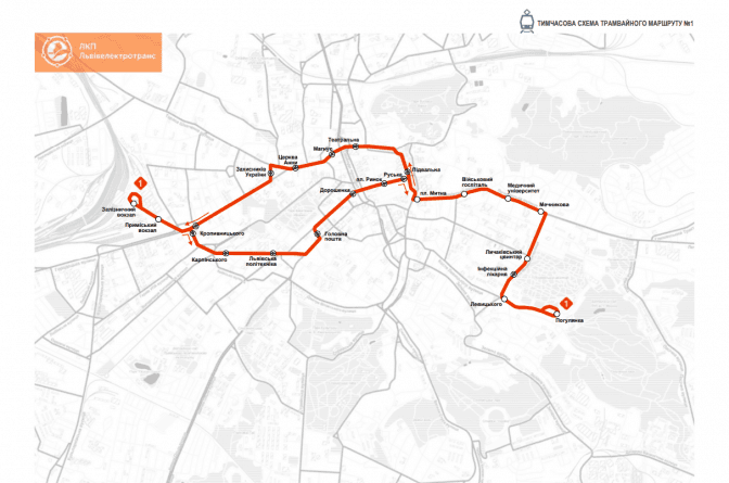 Тимчасова схема трамвайного маршруту №1