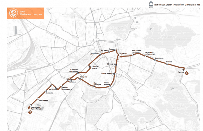 Тимчасова схема трамвайного маршруту №2