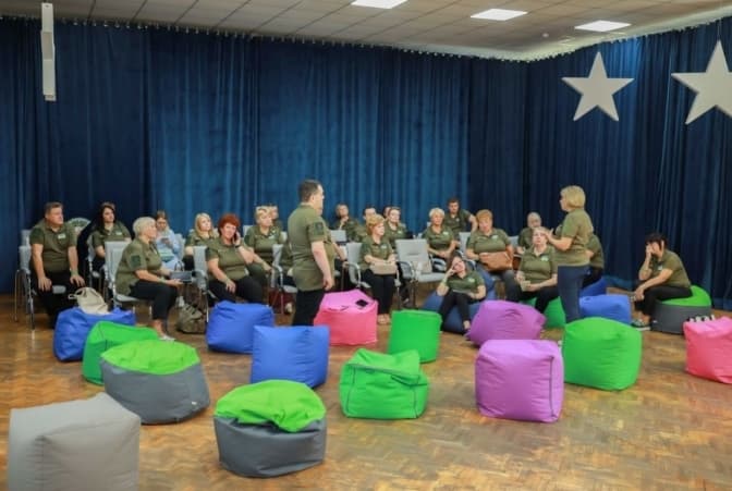 26 серпня в мистецькому ліцеї «Зміна» пройшла серпнева конференція педагогічних працівників Дніпровського району за підсумками підготовки закладів освіти до 2022/23 навчального року в умовах воєнного стану. Фото з неї опублікувала Дніпровська районна в місті Києві державна адміністрація. На світлинах видно, що майже всі учасники конференції були в одязі, який нагадує військову форму.