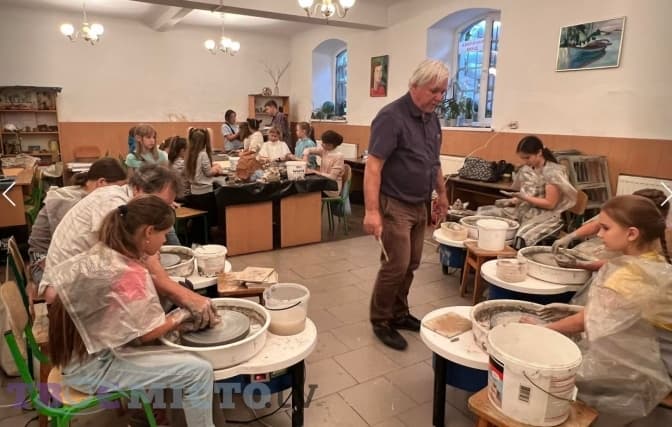 Хтось із дітей ліпив вазу, хтось – горнятко чи інший виріб. Для дітей ліплення з глини – справжня арт-терапія, тож митець приїхав, аби підтримати маленьких українців.