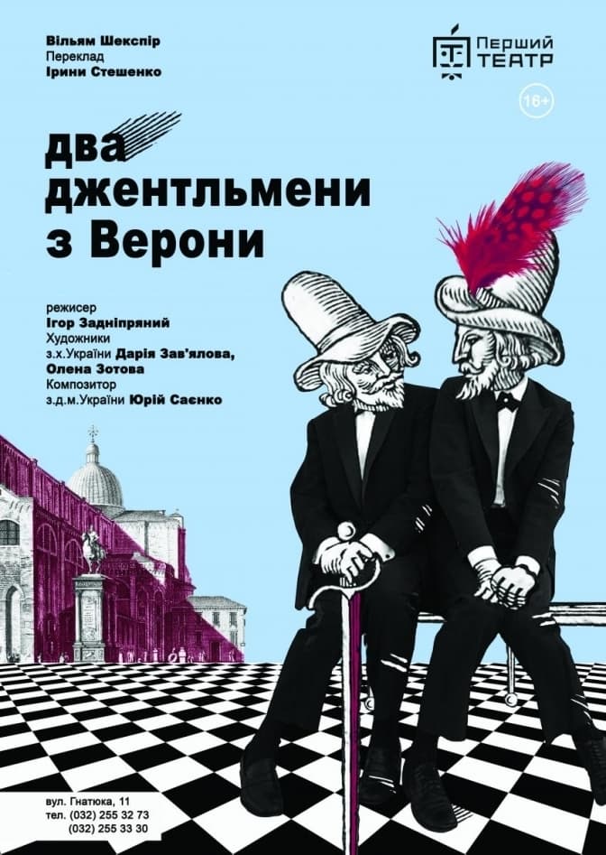 За п’єсою В. Шекспіра відбудеться комедійна вистава «Два джентльмени з Верони», тривалість – 2 год, з антрактом. Вікове обмеження 16+.