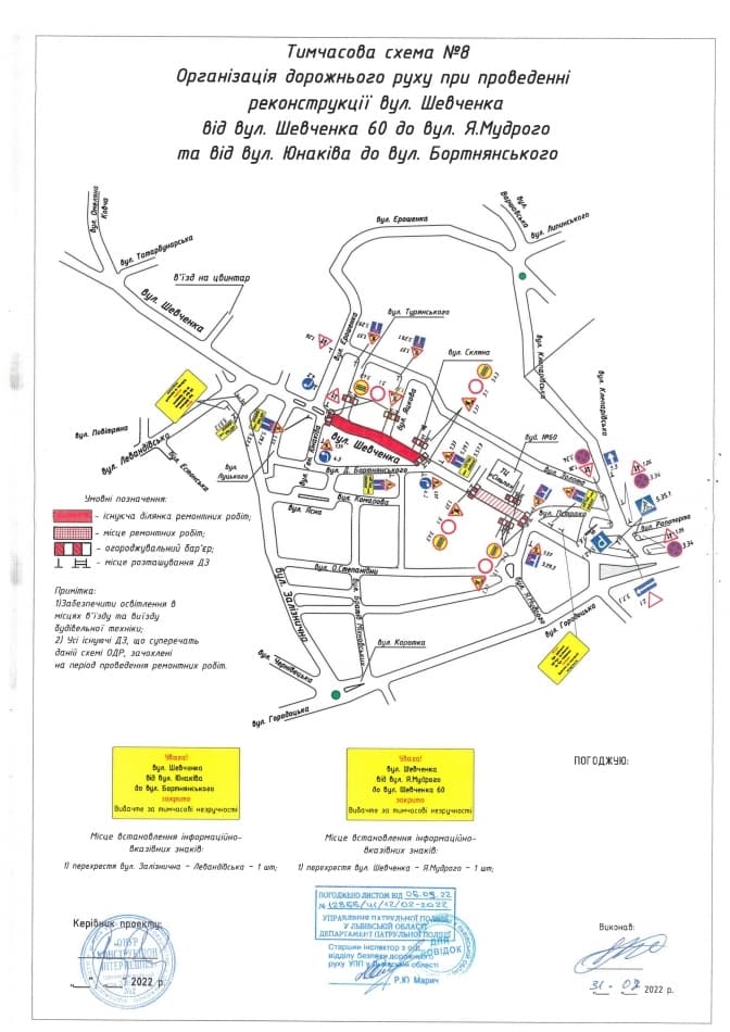 Нагадаємо, що від початку воєнного стану в Україні усі підрядні організації призупинили виконання будівельних робіт, реконструкцій, капремонтів, які мали продовжитися, розпочатися чи завершитися на різних вулицях Львова. Однак на початку травня підрядник вирішив відновити ремонт вул. Шевченка. Там зроблено було вже 80% із запланованого у третьому етапі реконструкції вул. Шевченка – на ділянці від вул. Ярослава Мудрого до вул. Залізничної. Вартість робіт становить 186,6 млн грн. Їх проводить ТзОВ «Онур Конструкціон Інтернешнл». Зокрема, 20 липня 2022 року для руху транспорту перекрили наступну ділянку вулиці Шевченка – від вул. Юнаківа до вул. Бортнянського. Для зручності об’їзду на вулицях Єрошенка, Золотій і Клепарівській організували двосторонній рух.