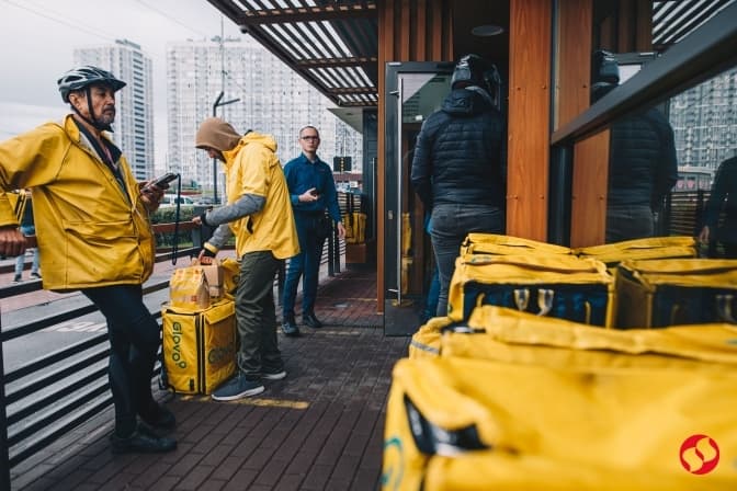 Сьогодні о 9:00 біля дверей трьох ресторанів McDonald’s в Києві, які знову відкрилися, вже вишикувалися черги кур'єрів Glovo, повідомляють у соцмережах. А через великий попит у додатку Glovo стався збій вже через 15 хвилин: він перестав показувати меню ресторану.