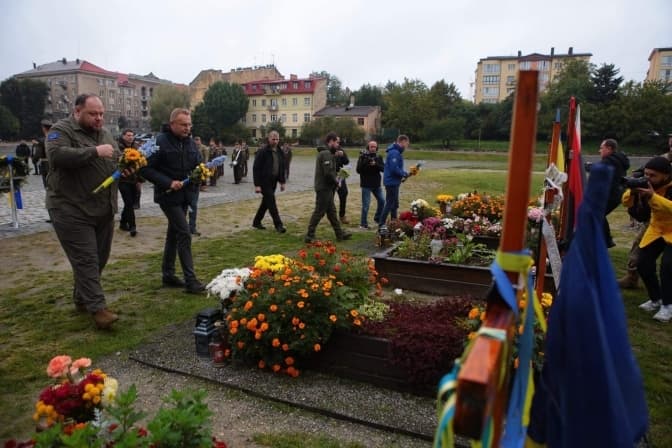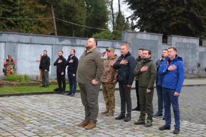 Руслан Стефанчук та Кирило Тимошенко насамперед відвідали Личаківське кладовище. Вшанували пам'ять новітніх Героїв України, які загинули під час повномасштабної війни.