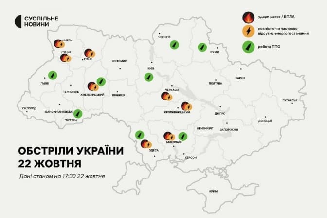 Як заявили в НЕК «Укренерго», масштаб пошкоджень співставний, або може перевищувати наслідки атаки 10-12 жовтня. Енергетикам довелося застосувати обмеження енергопостачання одразу в кількох регіонах України.