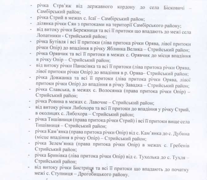 Зазначається, що обмеження повинні забезпечити охорону та збереження середовища існування, шляхів міграції і місць природного відтворення аборигенного виду лососевих – струмкової форелі.