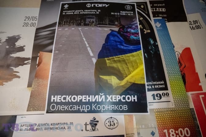 У п’ятницю, 28 жовтня, в артцентрі «Дзиґа» у Львові відбулася виставка фотовиставка «Нескорений Херсон», автором якої є фотокореспондент Олександр Корняков. Він перебував у центрі подій та зафіксував історичні моменти спротиву містян на мітингах проти озброєних російських військових.