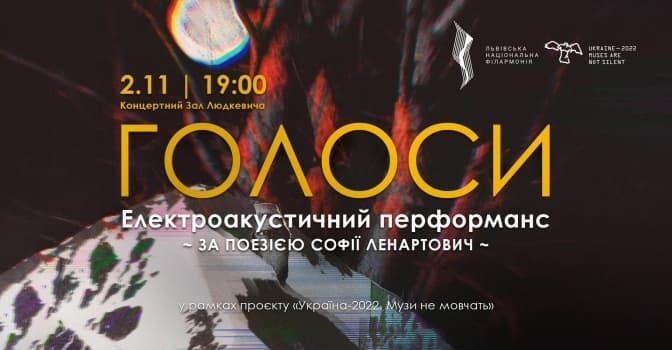 У рамках концертної серії «Музи не мовчать» відбудеться прем’єра електроакустичного перформансу «Голоси» за поезією Софії Ленартович. Митці за допомогою електроакустичної музики й архаїчних пісень, руху й пластичності хочуть оживити вірші в рамках перформансу.
