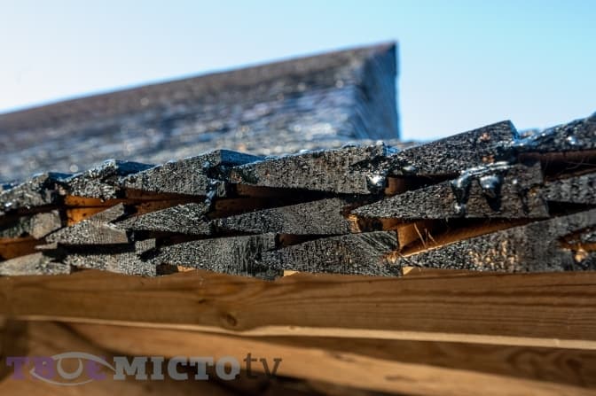«Її слід було перекрити, бо довший час вона стояла під поганим покриттям. Це так звана гонта, дерев'яна дахівка, близько 50 тисяч гонтинок пішло на перекриття. Кожна мала бути зроблена вручну… Після перекриття даху їх вкрили шаром ропи (сирої нафти), яка традиційно використовувалась для цього. Стояти вона може довго, якщо збережена структура і поновлювати її, навіть до 50 років», – каже він.