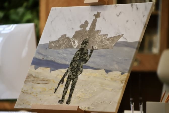 Картину із назвою «руський воєнний корабель…» створили каменярі фірми Stone з Хоросно. Новими власниками мармурової картини стали лікарі Іван та Наталія Кухар з Бетендорфа, штат Айова. Подружжя віддало за лот 3,5 тис. доларів США. Автором ще однієї картини, яку вдалося продати, став медик 24-ї бригади Михайло Гаврилів. За 900 доларів її придбав Андрій Крук з Чикаго.
