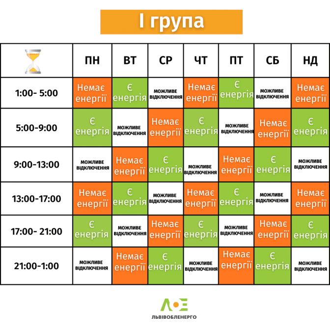 Ознайомитись з графіком для кожної з груп споживачів за днями тижня можна на сайті ПрАТ «Львівобленерго» у розділі «Чому немає світла».