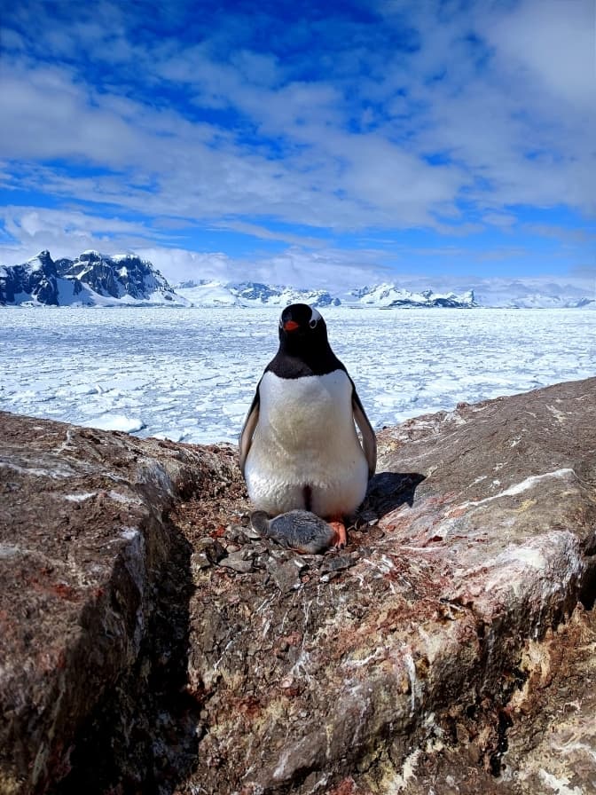 «Моніторинг гнізд пінгвінів на нашому острові Галіндез – це частина щоденної роботи біологів, але от саме нині ми порахували за днями, що з перших яєць якраз мають почати вилуплюватися пінгвінята. Перевірили гнізда на мисі Пінгвін-поінт, де в листопаді виявили найперші яйця, але там було тихо. Потому вирушили на сусідній мис Піджн-поінт. Підійшли до гнізд, затихли – і тут почули зовсім тоненький голосок малечі, а відтак – побачили й горду матусю», – розповіла про знахідку Марта Дзиндра.