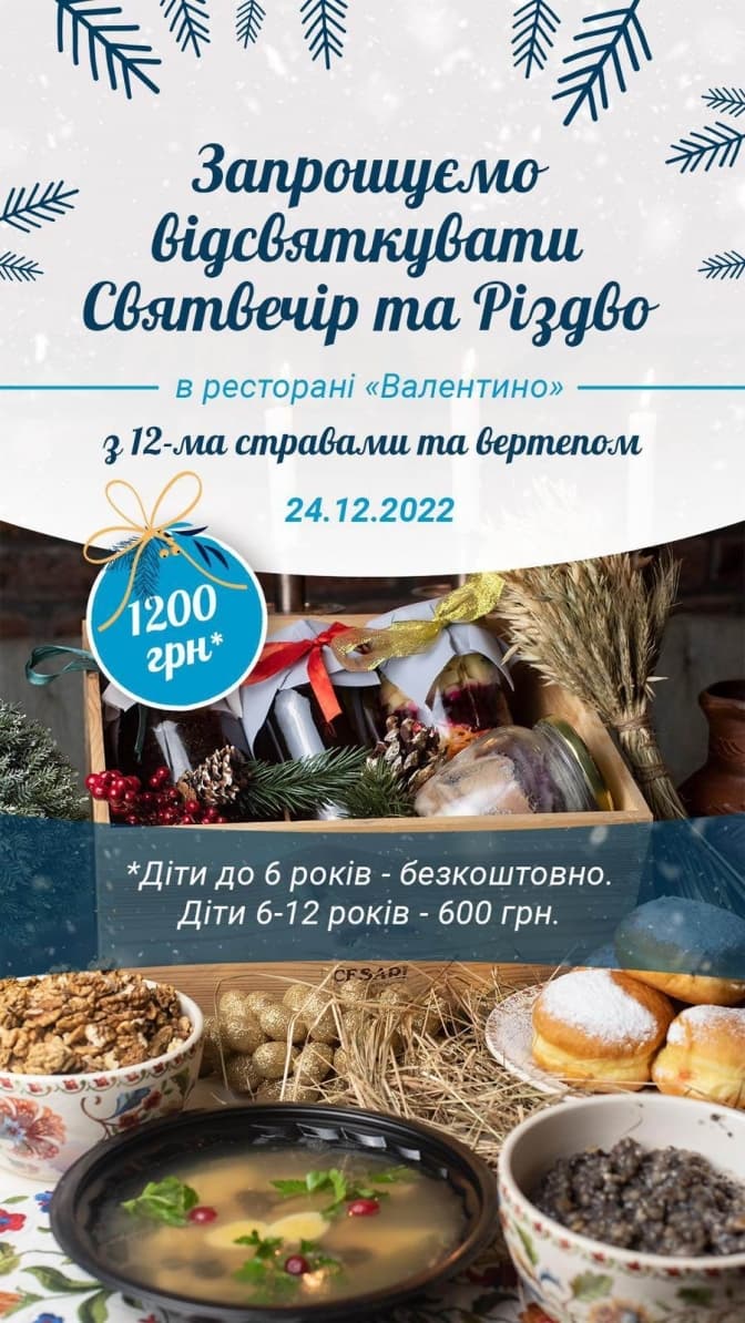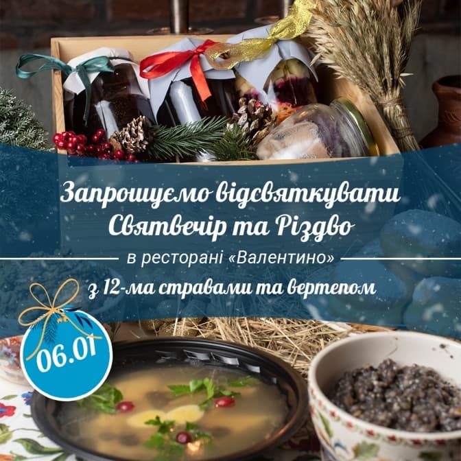 Ресторан «Валентино» кличе до себе на католицький Святвечір, різдвяну вечерю та Новий рік. Усім, хто зголоситься обіцяють незабутні враження, адже ресторан забезпечений двома потужними генераторами.