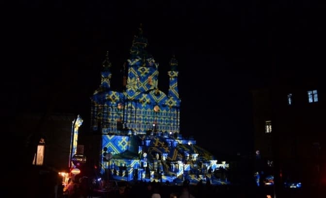 Так, у перший день він підсвітив Андріївську церкву, Національний музей історії України, дзвіницю Михайлівського Золотоверхого монастиря, будівлю Дипломатичної академії України імені Геннадія Удовенка та дзвіницю Софійського собору.