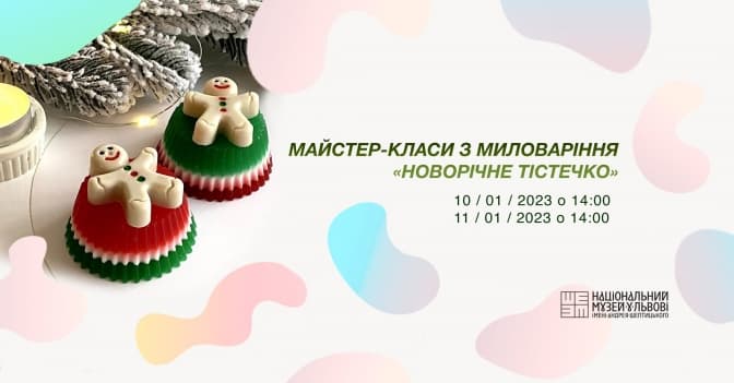 Дітей та дорослих запрошують до Національного музею у Львові ім. Андрея Шептицького на майстер-класи з миловаріння «Новорічне тістечко». Разом з майстринею миловаром з Полтавщини Богданою Мороз ви зварите тришарове «тістечко», додасьте блискіток. Поки мило буде застигати, розмалюєте пряного чоловічка і льодяник (також із мила), пограєте в гру на кмітливість.
